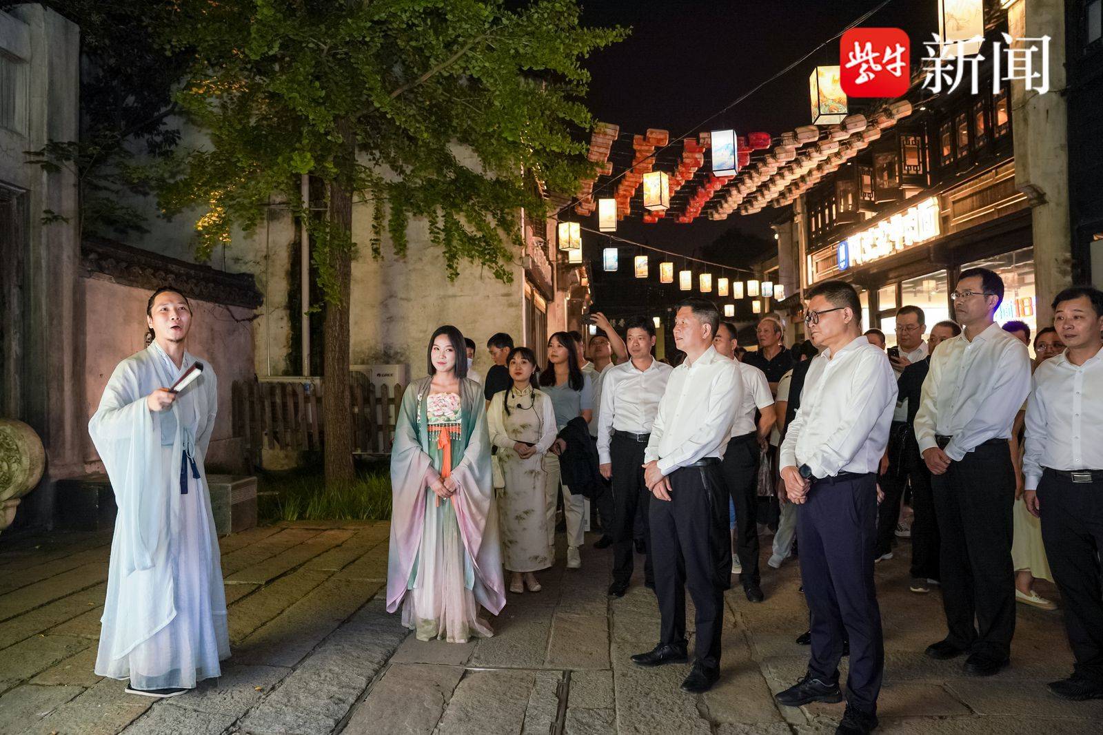 惠山古镇绣嶂街上,来自河北邯郸的西洋镜拉大片、云南大理的扎染、陕西延安的剪纸、山西湖口的草编、江苏连云港的面塑、无锡玉祁老酒……各种非遗传统技艺之间的碰撞与融合,激发创意和灵感,观众在非遗市集上玩游戏、看杂耍,身临其境感受非遗之魅和“水韵江南”的万种风情。