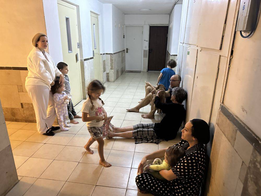 10月7日,防空警报响起后民众在耶路撒冷一处建筑内避难。新华社记者王卓伦摄