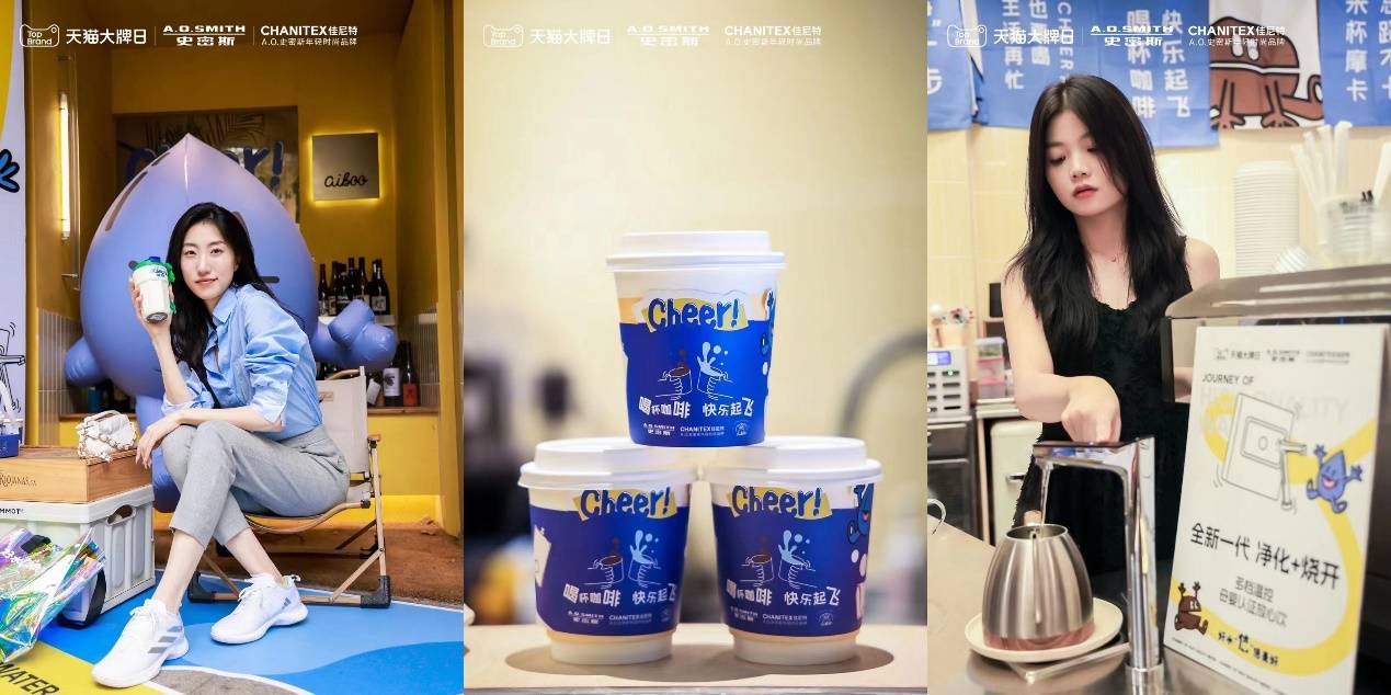 在位于南京知名文艺新地标国创园,“好水cheer之旅—A.O.史密斯&天猫大牌日活动”同期举行,A.O.史密斯-佳尼特与AIBOO COFFEE联名,将咖啡店打造成别具一格的净水咖啡快闪店,店内分设了潮人拍照区、职场精英区、亲子互动区、咖啡体验区等,好水与咖啡豆的碰撞就此展开。