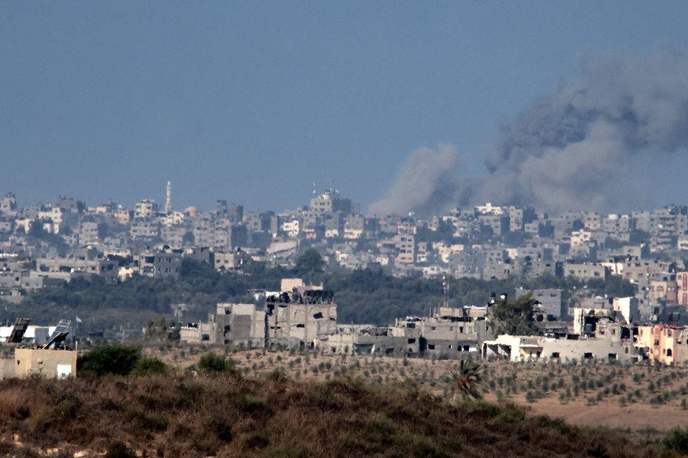 这是10月15日在加沙边境以色列一侧拍摄的以色列轰炸加沙地带后升起的浓烟。新华社发(伊兰·阿萨亚格摄/基尼图片社)