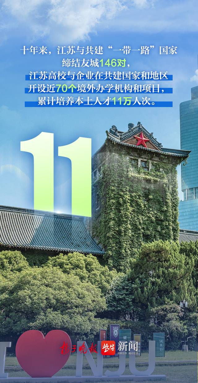 今年是共建“一带一路”倡议提出十周年。十年来,处于“一带一路”交汇点上的江苏,主动参与建设,着力推动东西双向开放发展,积极拓展对内对外开放空间,在共建“一带一路”倡议的“工笔画”上留下了属于江苏的特有烙印。