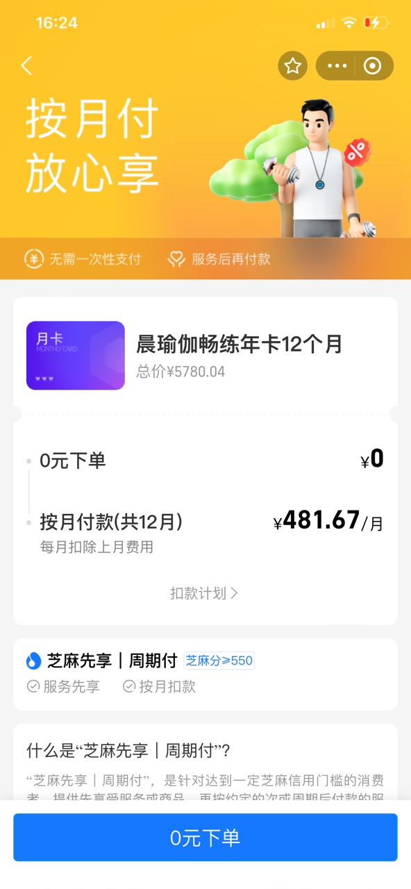 商家在支付宝小程序推广芝麻信用“先享后付”月付产品