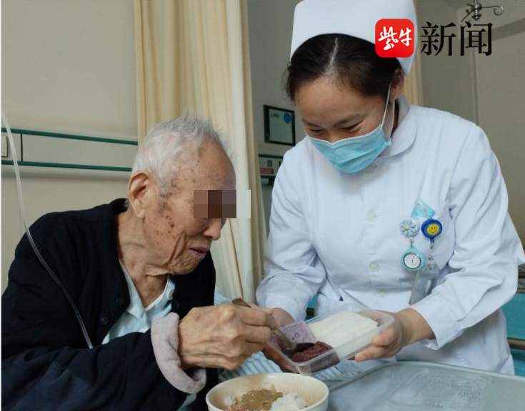 “爷爷奶奶们好!今天是重阳节,这是我们食堂专门为你们做的重阳糕,送给你们!祝爷爷奶奶们早日康复!健康长寿!”10月23日中午,南京市中西医结合医院正在午餐的住院老人们收到了一份暖暖的节日礼物。
