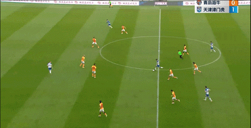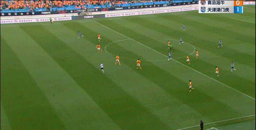 津门虎本轮客场4:1大胜青岛海牛,津门虎队的第二粒进球,梅里达中路斜传右路空当的谢维军,谢维军拿球到禁区抗住两名防守球员后推射破门,从接球停球到对抗下两过连人一气呵成,一脚推射也非常冷静。