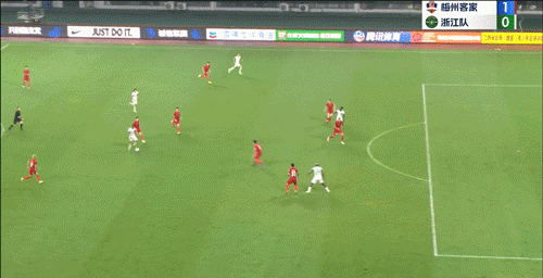 在梅州客家1:1战平浙江队的比赛上半场伤停补时阶段,梅州客家队在防下对手角球后反击,康拉德震撼极速狂飙,在两名防守球员追赶的情况下仍拿到球,面对门将冷静推射远角得分。这一球的反击虽然有“误打误撞”的成分(致命一传并非来自梅州客家而是浙江队乌龙助攻),但康拉德的速度和射术仍体现得淋漓尽致。
