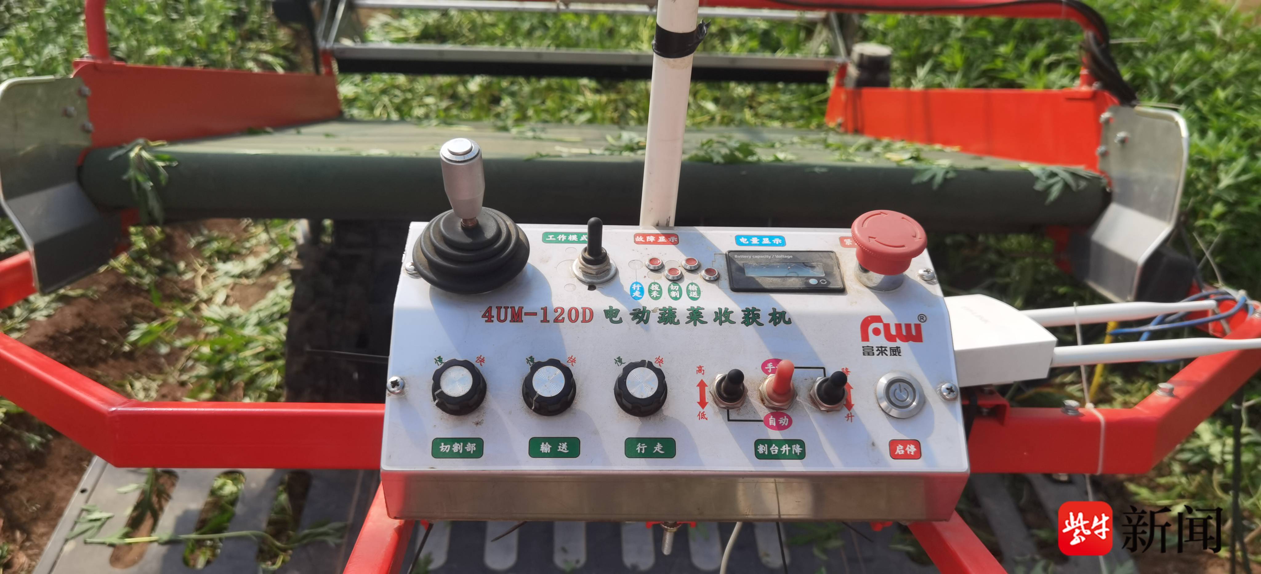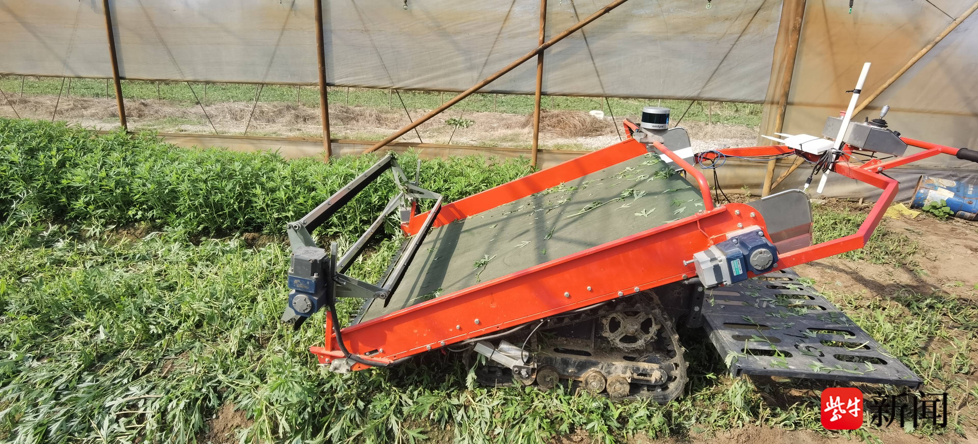 记者在现场还看到由江苏省农机具开发应用中心、南京农业大学和南通富来威农业装备有限公司共同合作完成的,技术先进的无人收割机进行芦蒿的收割工作。这款无人收割机采用了履带式设计,能够适应不同地形和复杂环境,保证了收割过程的稳定性和安全性。更为重要的是,无人收割机还具备自动拐弯功能,可以根据地块形状和轨迹布局进行灵活的拐弯操作,提高了收割效率,减少了农作物的损耗。陈钢表示,一台机器至少可以代替8个工人的工作量。