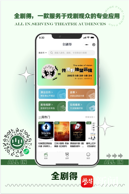记者了解到,该应用刚上线不到一个月,已拥有超过2万的用户注册。“全剧得1.0版本”针对观众在日常观剧中遇到的剧目信息不全面、出票求票难、剧场视野难以抉择、观剧行程无法系统化等问题,做出优质解决方案,“拯救”戏剧观众日常“心碎”时刻。