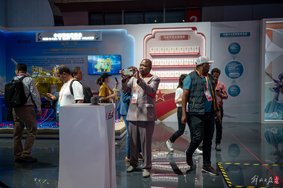 小商品商贸,国际关系治理,中国智能制造,国家馆的内容丰富,展现形式活泼,从宏观到微观,成为一个了解中国的窗口。