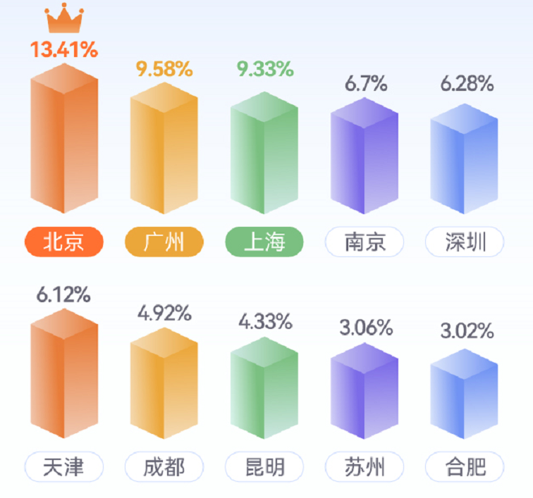 其中,北京增长最突出,达13.41%,广州与上海紧随其后,也分别增长了9.58%、9.33%。再往后依次是南京、深圳、天津、成都、昆明、苏州和合肥,装修增速都高于3%。