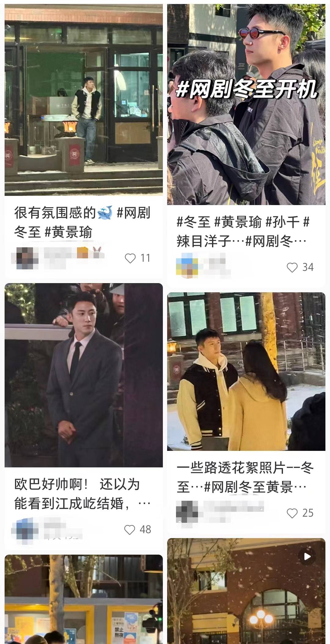 网剧《冬至》由黄景瑜、孙千主演,11月3日开机,宣传资料显示拍摄周期为100天。