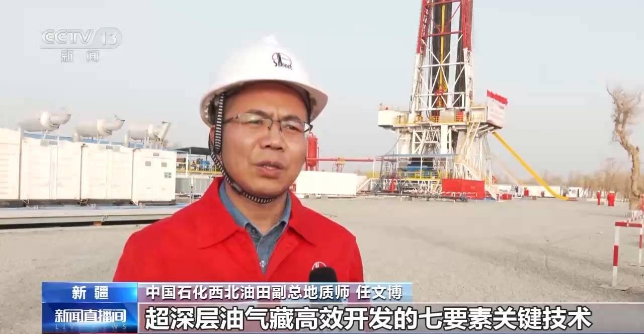 中国石化西北油田副总地质师 任文博:我们创新形成了超深层油气藏高效开发七要素关键技术,8000米以深规模的储层预测吻合率达到90%以上,单井产能由三年前的2.5万吨提高到目前的8.2万吨。通过“少井高产”策略的实施,实现了超深层油气藏的高效益开发。