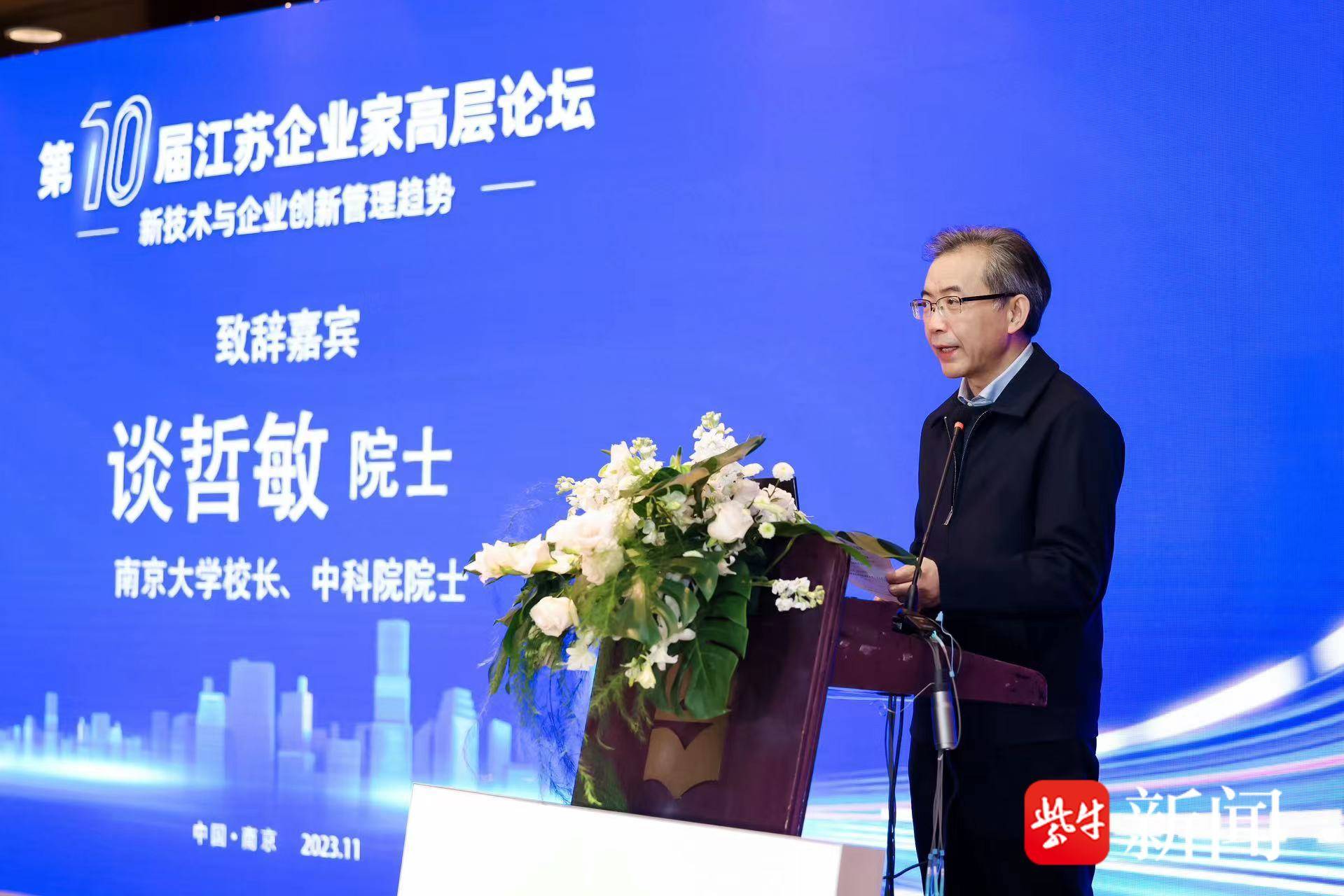 中国科学院院士、南京大学校长谈哲敏,江苏省企业联合会会长李琨等嘉宾为论坛致辞。