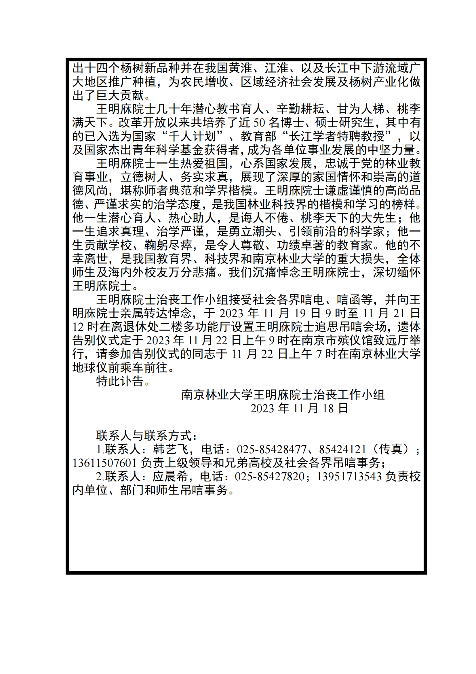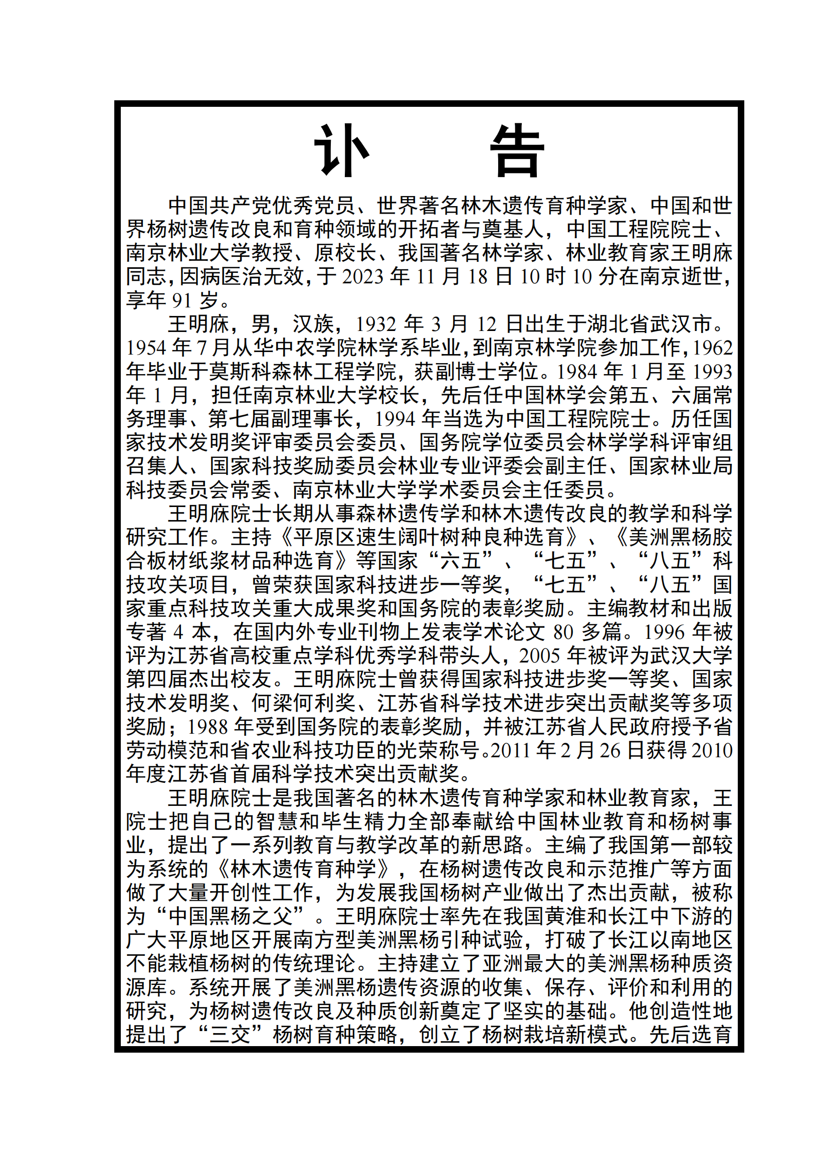 中国工程院院士、南京林业大学原校长王明庥逝世