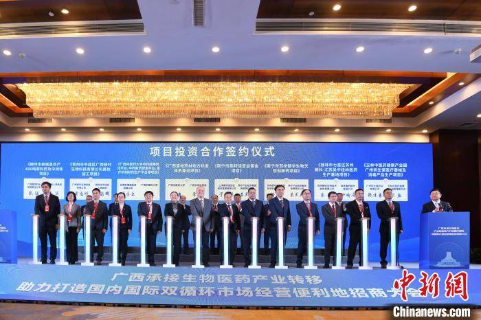 中新网南宁11月19日电(韦佳秀)11月18日,广西生物医药产业招商大会在南宁举行,大会现场签约23个项目,投资总额超116.88亿元人民币。