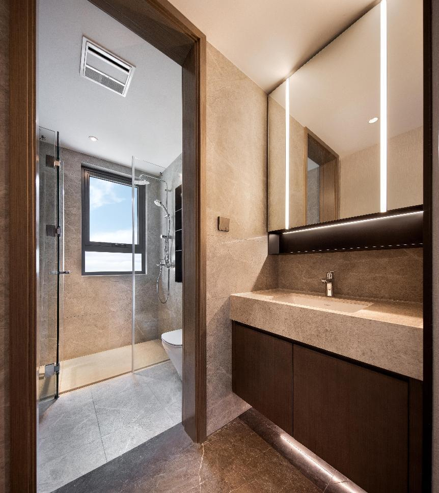 在室内设计上,璞境历经对人体工程学的全面研究后,邀请了DIA的设计大师薛峰老师亲自指导设计,引入德系精装系统,不仅配置了水地暖、中央空调、全热交换新风、净水、智能化控制五大现代化科技系统,在品牌上采用了国际品牌,将所有对生活的考量倾注在空间之内。