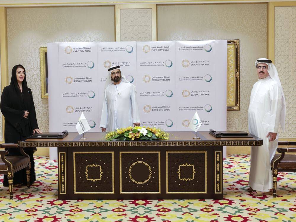 在阿联酋副总统兼总理、迪拜酋长谢赫穆罕默德·本·拉希德·阿勒马克图姆的见证下,迪拜世博城与迪拜水电局(DEWA)签署协议,全力推进使用可再生能源为世博城供电。此次合作标志着世博城向2050年净零排放目标迈出重大步伐。