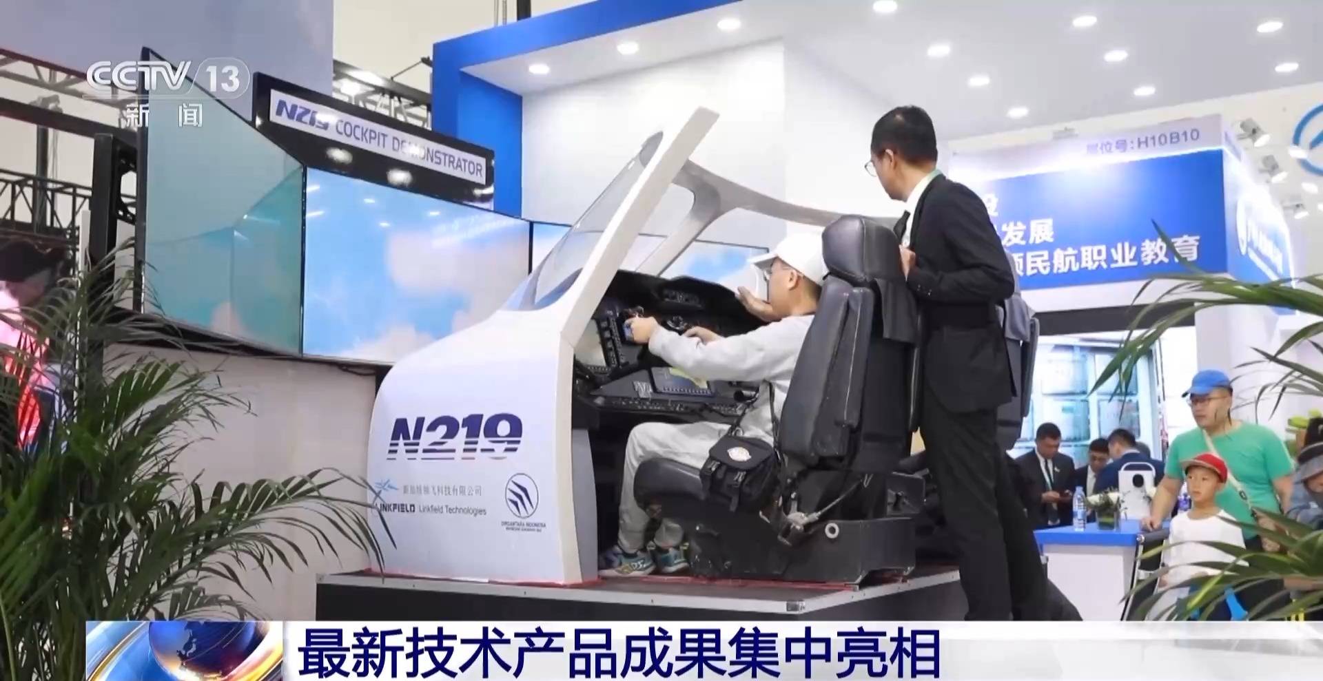 总台记者 吴媚苗:这里是本次亚洲通用航空展的室内展区,我们发现,不少参展商带来了这些形态各异、造型新潮的模拟飞行系统,涵盖了全息投影、裸眼3D等技术,让观众体验一把“当机长”的乐趣。