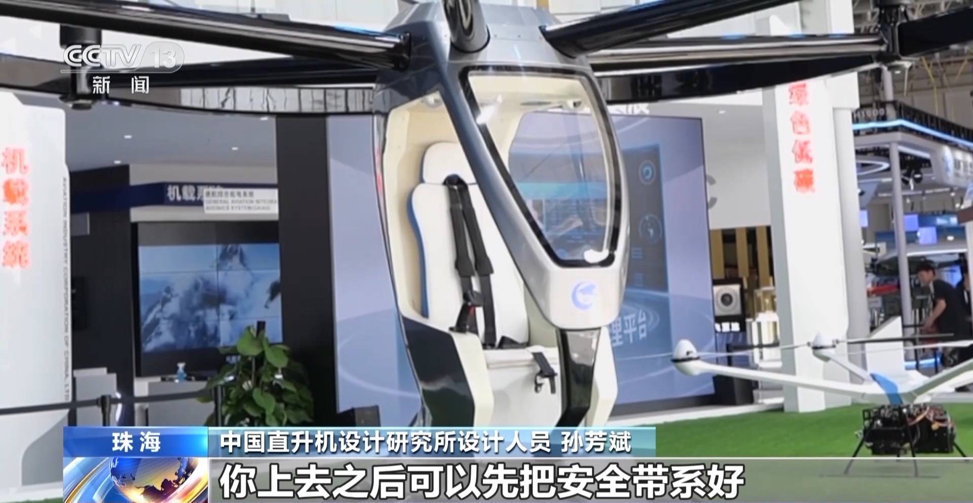中国直升机设计研究所设计人员 孙芳斌:你上去之后先把安全带系好,然后就可以通过驾驶杆来操作它前后左右运动,或者说垂直起降。你可以通过屏幕来看到你航程的变化,飞行的状况。