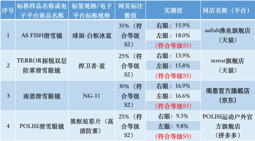 滑雪镜颜色越深越好?非也!请看江苏省消保委这份比较试验报告