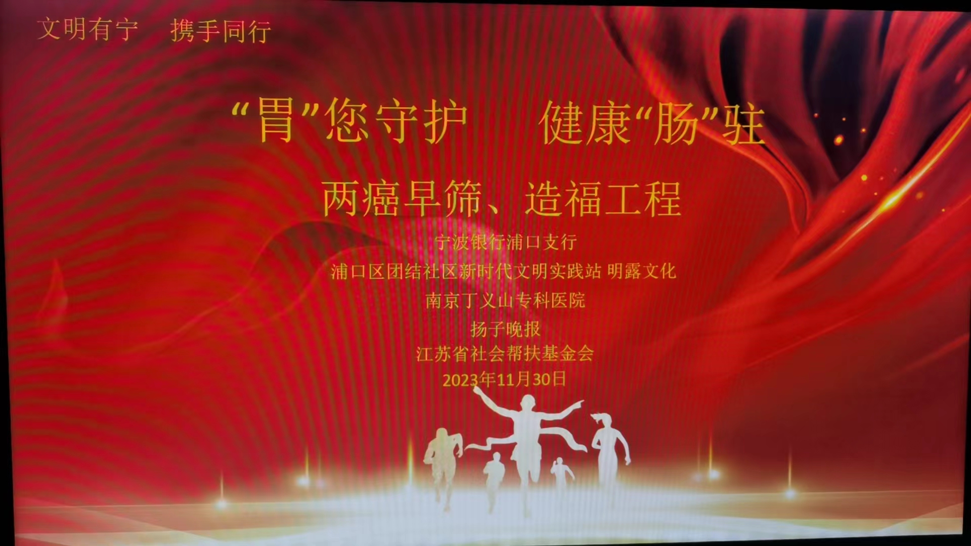 扬子晚报网 11月30日讯 (郑幼明 朱小虎 文/摄)11月30日上午,宁波银行南京浦口支行、浦口区江浦街道团结社区,邀请南京丁义山医院的专家和医护人员,为该行的用户和社区的居民,举办“两癌早筛 造福工程”专项主题活动。