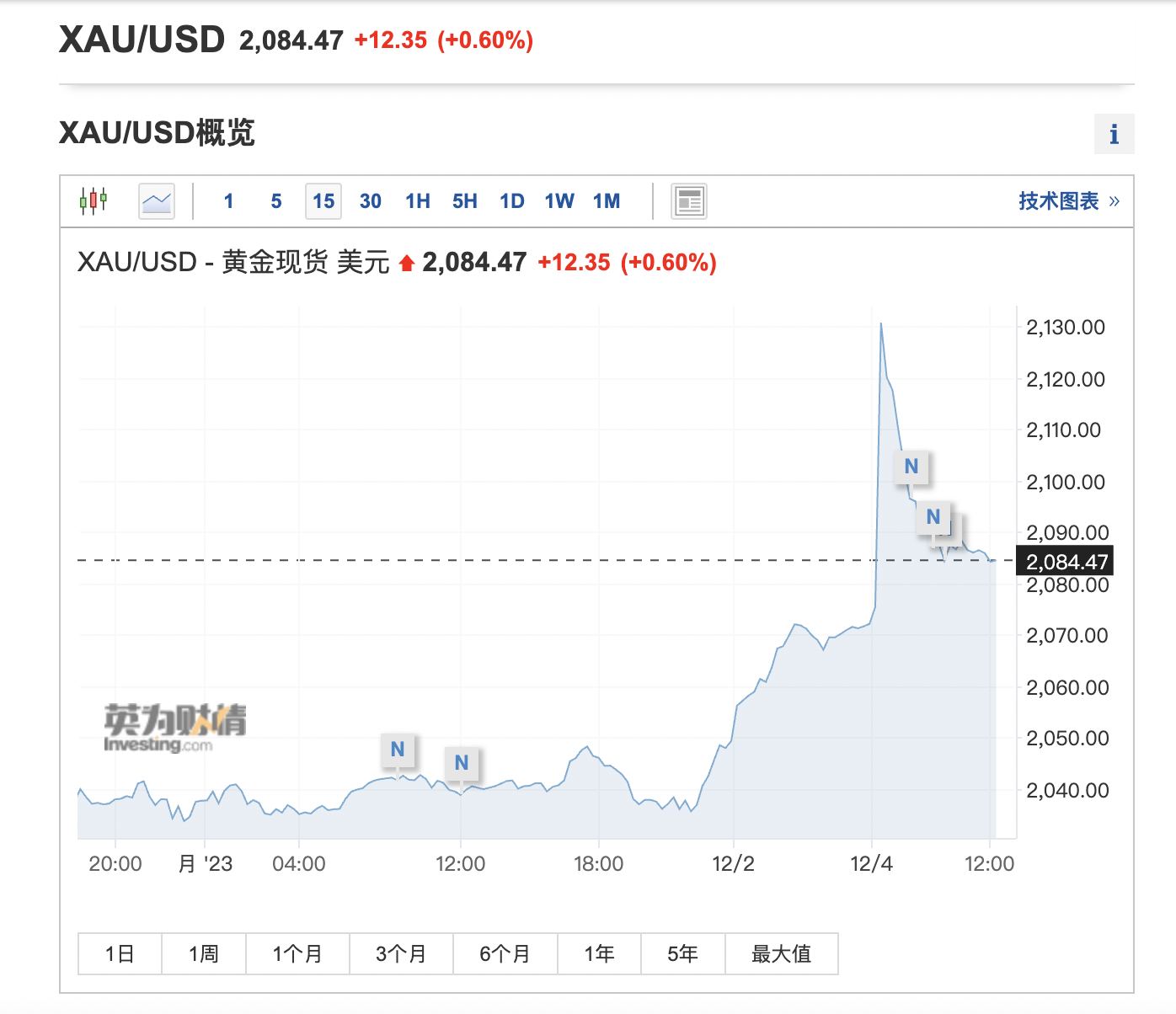 自11月中旬以来,黄金的期货和现货价格均双双走强。至12月4日,COMEX黄金期货早间一度站上2150美元/盎司关口,现货黄金一度涨至2144美元/盎司,均续刷历史新高。