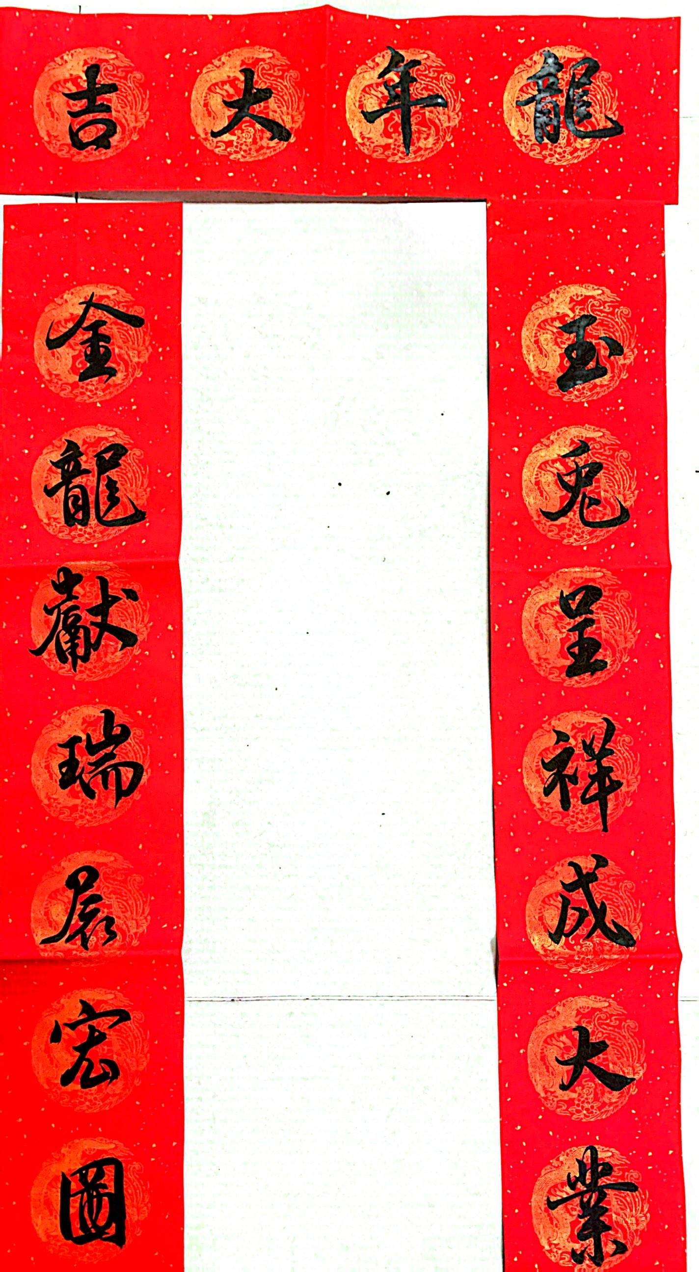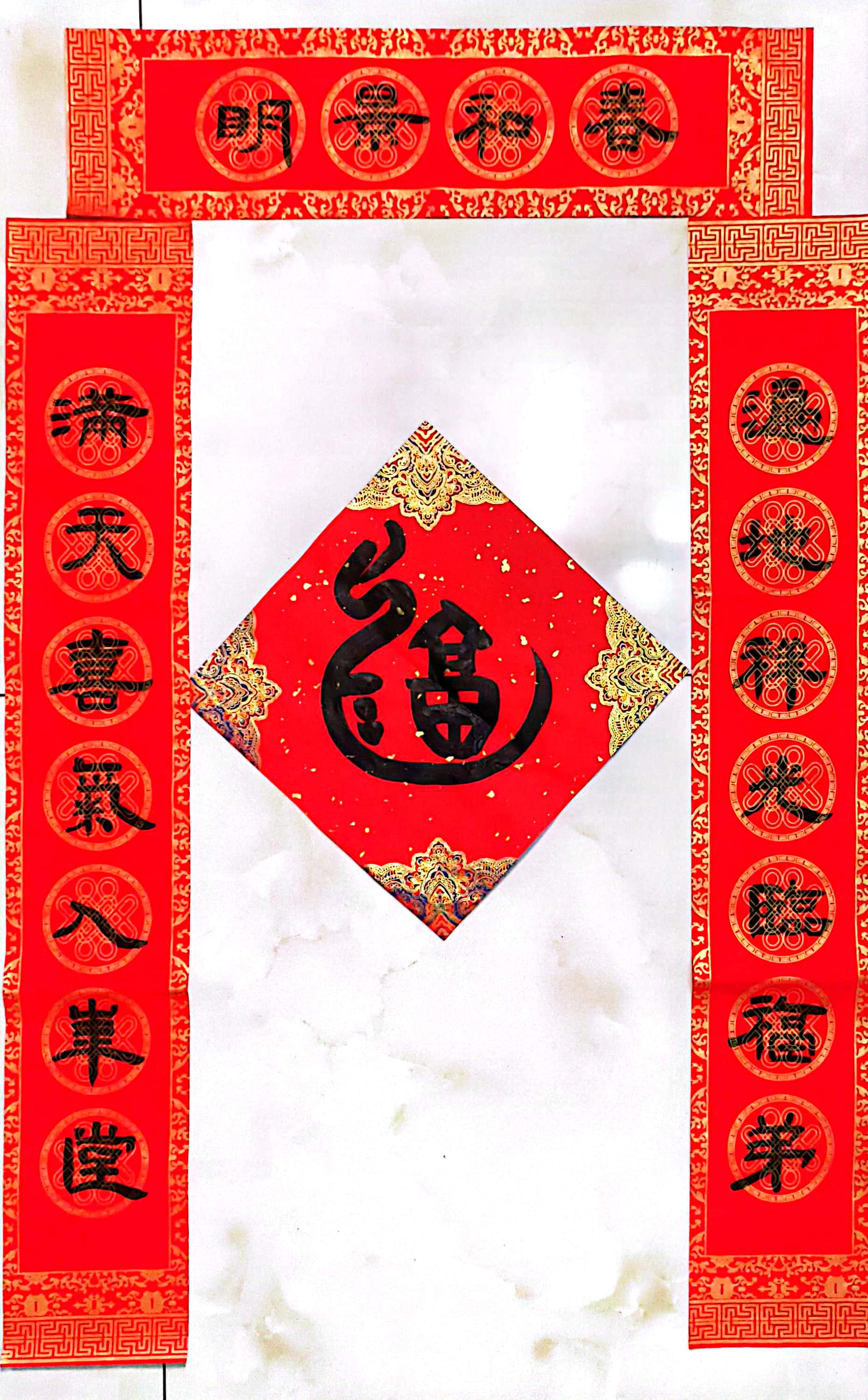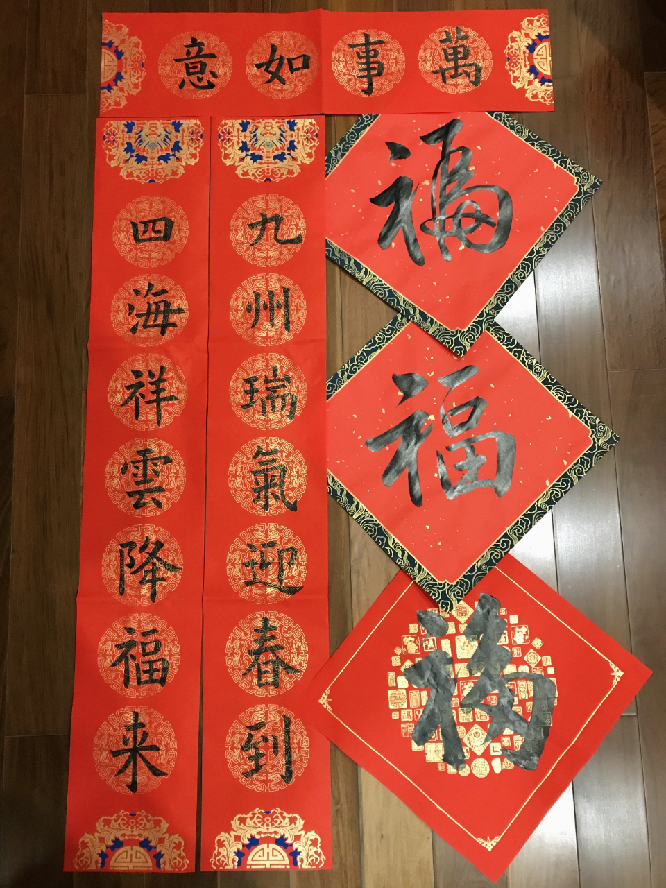 1、投稿内容:毛笔书写的春联、“福”字作品
