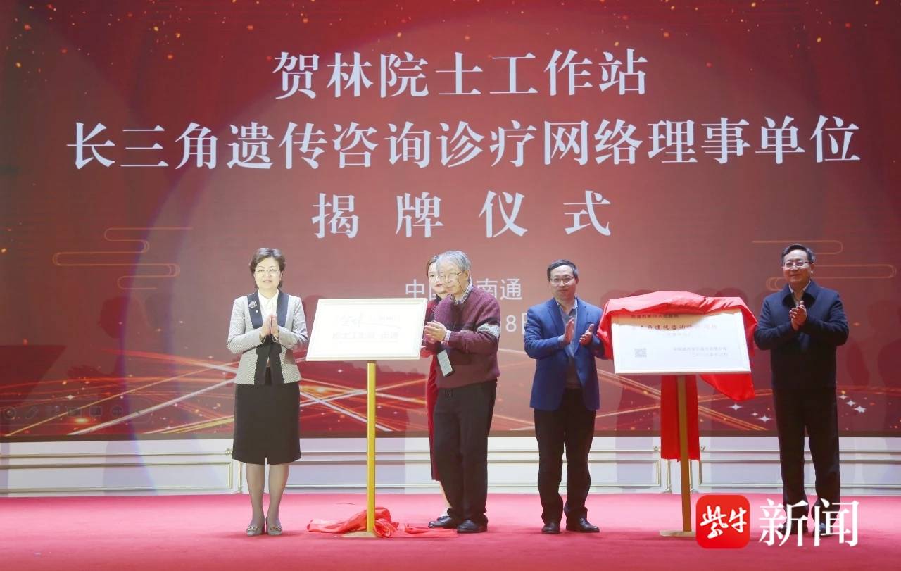 南通市委常委、宣传部部长,市政府副市长陈冬梅和中科院院士、上海交通大学Bio-X研究院贺林教授为院士工作站揭牌;南通市卫健委主任张兵和上海交通大学Bio-X研究院秦胜营教授为“长三角遗传咨询诊疗网络理事单位”揭牌。