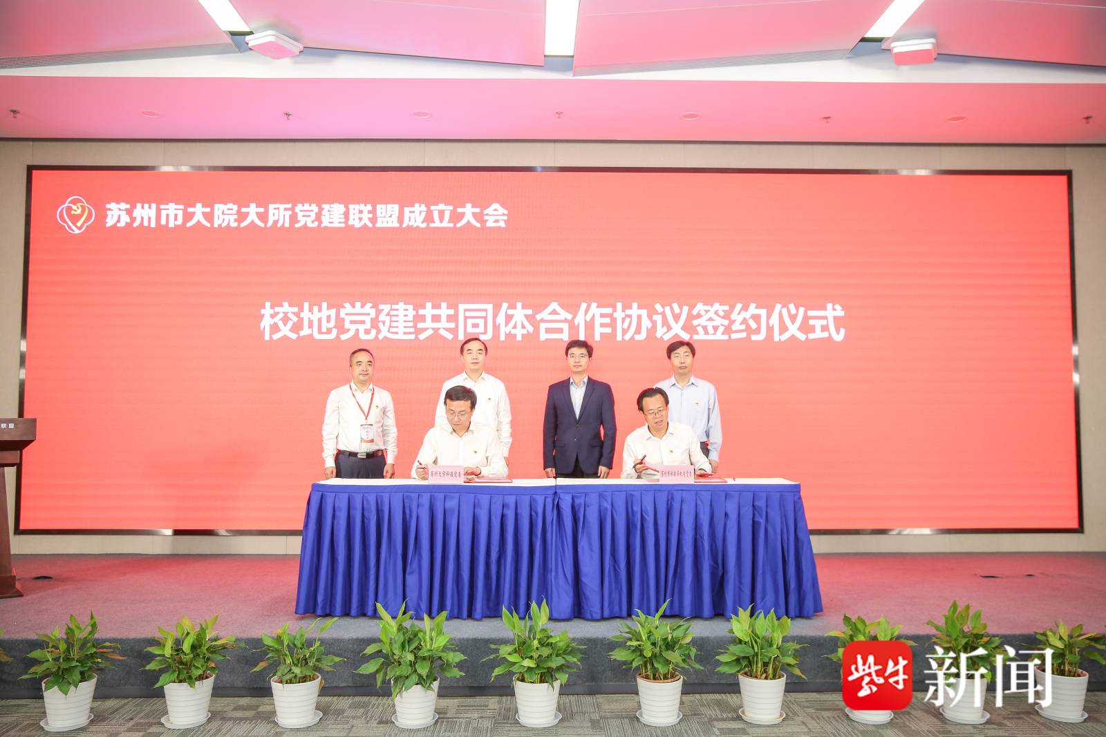 党建联盟聚力深化科创协同。学校以共同发起成立苏州市大院大所党建联盟、深度参与环太湖科创圈党建共同体为契机,探索“党建引领、人才支撑、科研攻关”的协同创新新模式。35家大院大所合作承担国家、省、市科技项目,凝聚基层党建优势和党员智慧力量集智攻关。学校与市科技局机关党委围绕联动协同重大科研平台建设、精准布局区域产业科创中心、联合推进高价值专利创新转化、共同实施创新人才引育计划等四个主题,主动联合承担或参与重大科研项目,积极参与创新联合体建设、创新型领军企业培育、国家重点实验室创建等工作,为“强化国家战略科技力量建设,努力实现高水平自立自强”贡献苏大力量。学校依托“苏集创”专栏,围绕区域产业创新集群发展重点,与苏州地方联合开展创新项目路演。启动至今已完成74期“苏集创”科技成果推介,发布科技成果89项,专利成果134项,累计吸引1700余家企业参会洽谈。