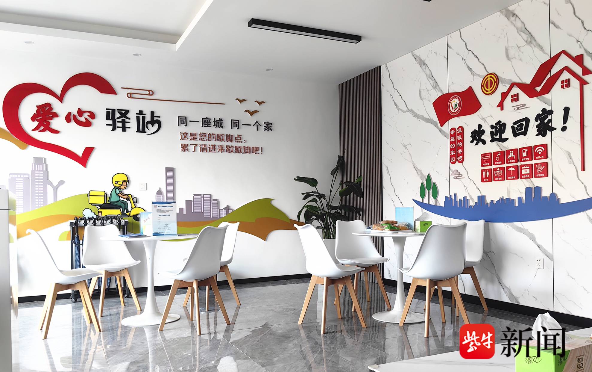 “驿站的微波妒,让我们吃上热饭、喝上热汤,暖胃又暖心!”下午2点,顺丰小哥李鑫送完上午最后一单快递,手机电量告急,肚子也发出了抗议声。他就近来到驿站,在这里吃饭、喝水,给手机充上电,还小睡了一会儿。这儿已成为他每天工作之余休息、放松的地方。