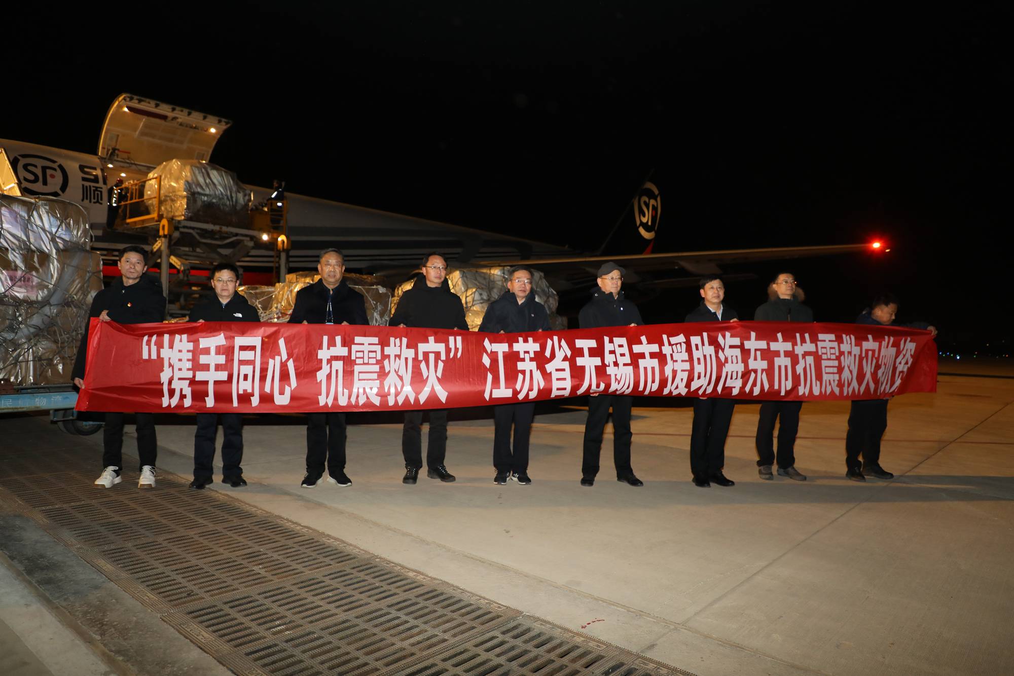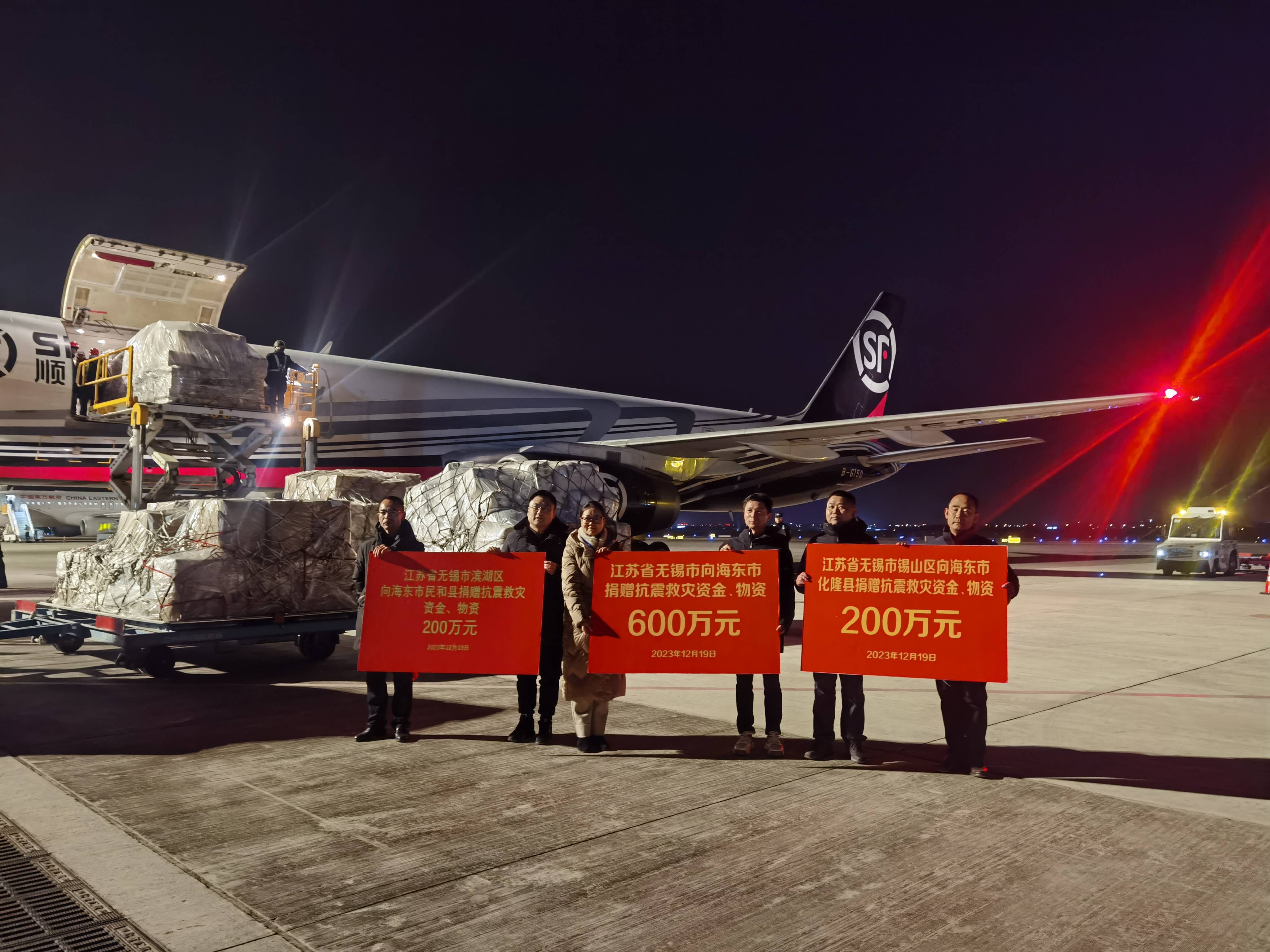 省工作队组织江苏后方调配救援及捐助物资,联系开通无锡和兰州机场物资运输及到达绿色通道,经前后方共同努力,12月19日18点40分,无锡市第一批价值542万救灾物资空运至青海,包括毛毯、睡袋、棉大衣、折叠床、帐篷、应急灯等一批受灾地区急需物资于21点40分抵达兰州中川机场,无锡市工作组会同当地政府当晚即将相关救灾物资发放至受灾地区群众手中。