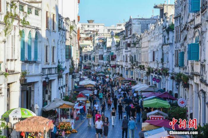 海口骑楼老街游客如织。 中新网记者 骆云飞 摄
