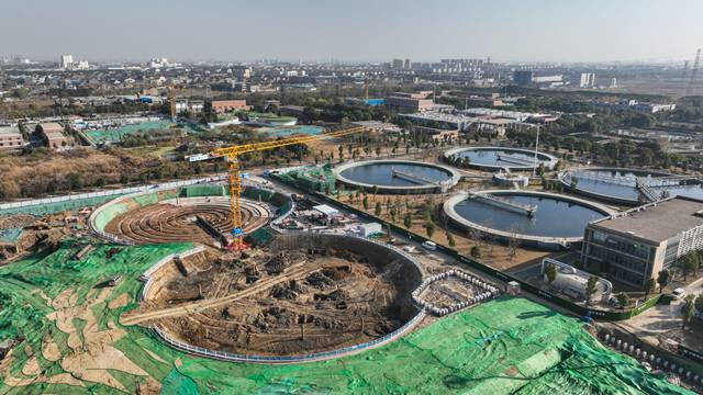 据介绍,江边污水五期工程生物反应池单元开挖长度180米、宽度140米、深度5.9米,内含2个生物反应池,是江边污水五期工程中最大体积单元。目前,生物反应池已完成约3000根先张法预应力管桩和600幅型钢水泥土搅拌桩的全部施工,进入土方开挖阶段,总共需出土16万方,预计年内完成约90%。该工程预计2025年12月建成投运。