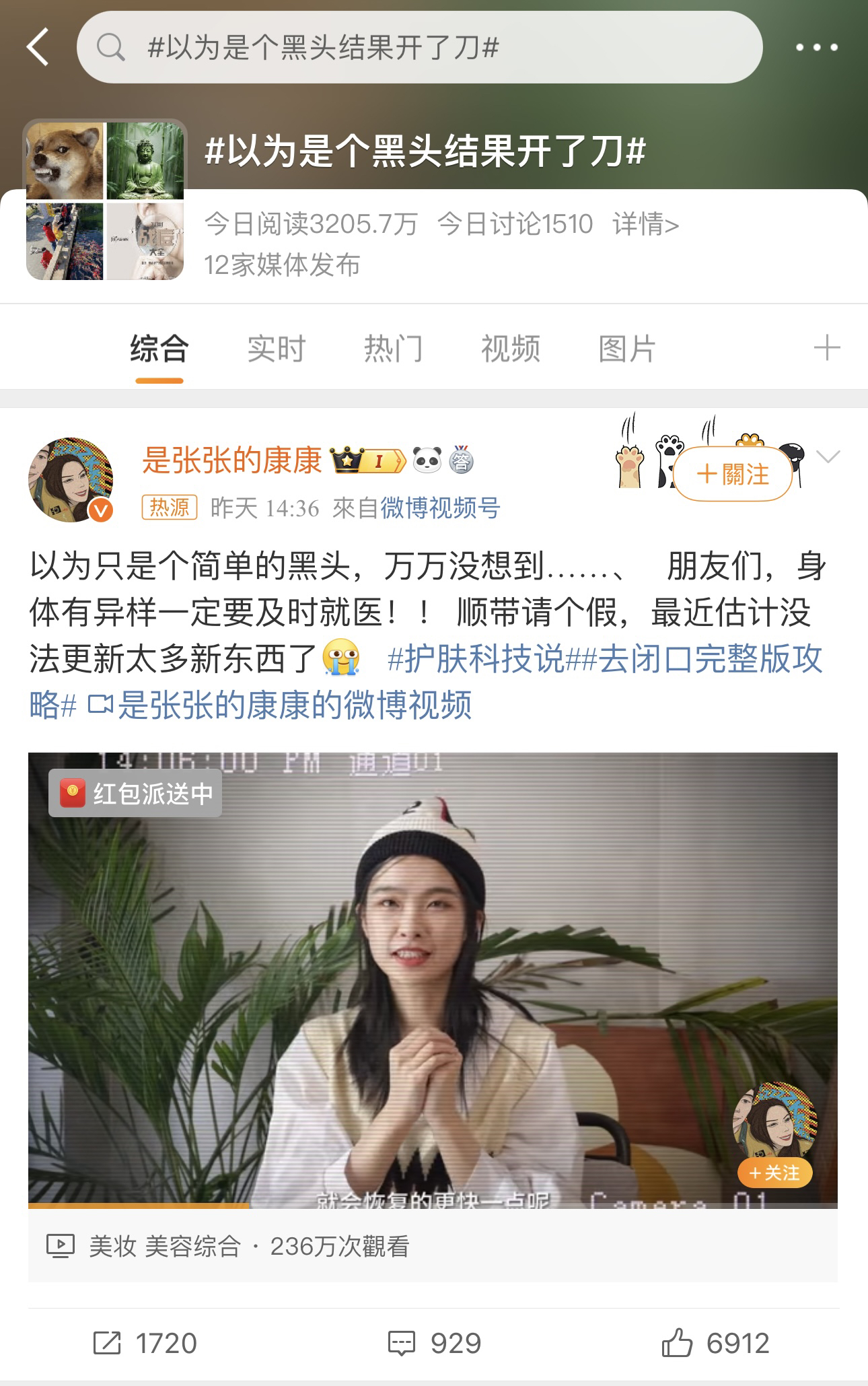 黑头、粉刺、痘痘……皮肤上长了东西总是会引起爱美的女孩儿们的格外注意。近日,博主“是张张的康康”就分享了自己因摸到一个类似“黑头”的东西,结果最后开刀处理的经历,引发了不少网友关注。