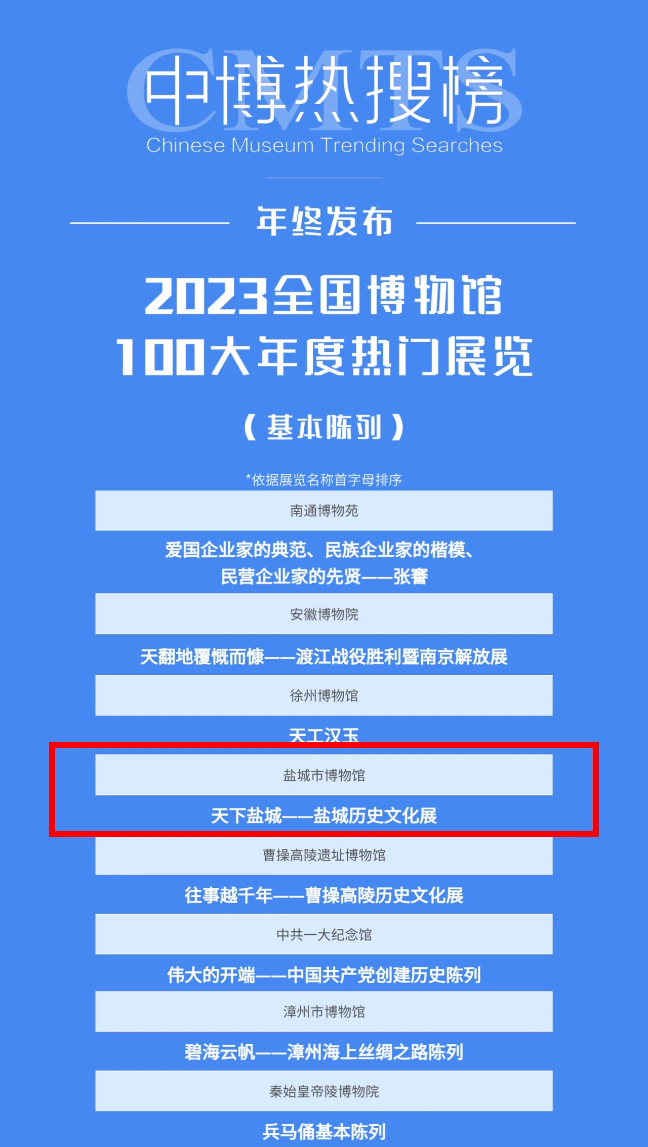 盐城博物馆《天下盐城》《今时明月照梦华》上榜全国年度百强热门展!