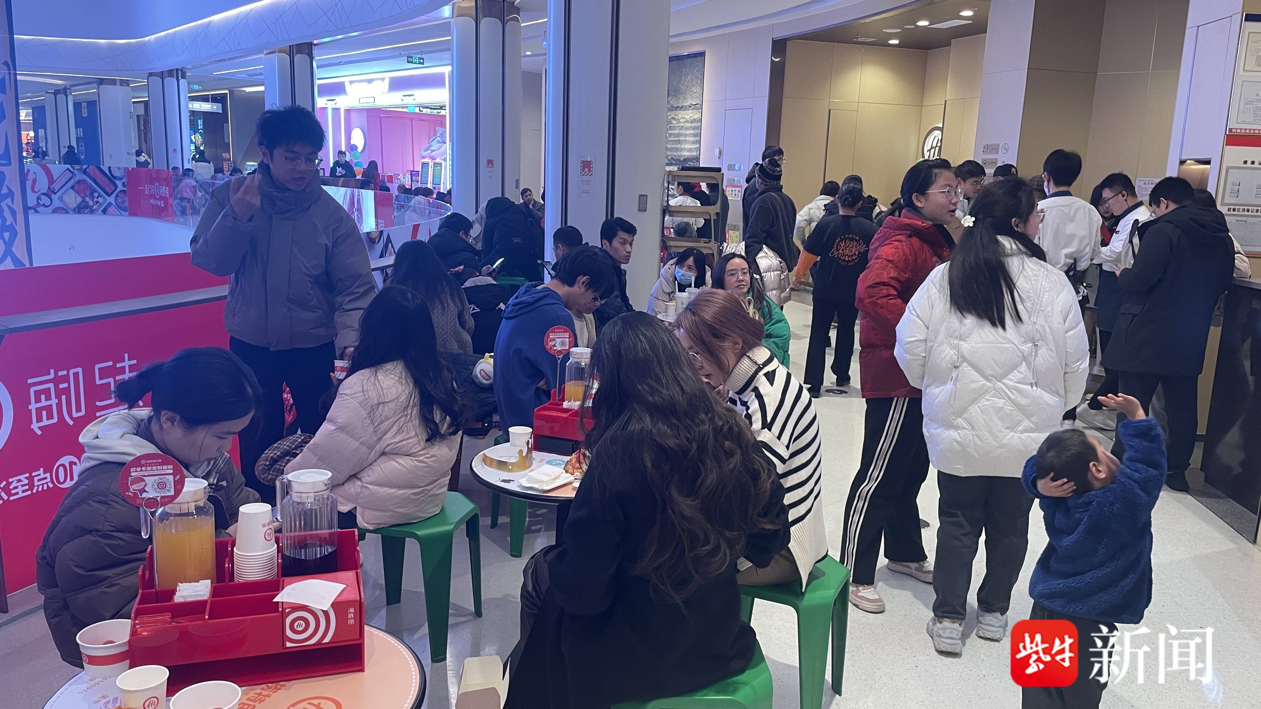 “跨年夜到新街口是人挤人、车堵车,不如到河西附近的综合体错峰跨年”。晚上6点50分,南京河西龙湖天街海底捞餐厅。扬子晚报/紫牛新闻记者在这里看到,这家餐厅门口坐着数十位顾客等位。一位下午3点多就抢先进店的简女士告诉记者,儿子生日就在今天,正好是跨年夜,因为担心新街口人多就特地选择在这里。哪知道电话订不到位,只能提早过来慢慢吃。她边吃边刷刷手机,这里还有川剧变脸表演,感觉还不错。记者问一位服务员可否跳“科目三”,被告知因为涉及版权,“科目三”已下架。两位00后服务员透露:当晚大厅座位全部订满了。