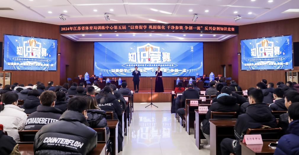 1月5日,江苏省体育局训练中心第五届“以赛促学 巩固强化 干净参赛 争创一流”反兴奋剂知识竞赛在多功能厅成功举办。省体育局青少年训练与反兴奋剂管理中心负责同志,训练中心负责同志,各项目中心管理干部、教练员和运动员代表,各科室相关同志参加活动。