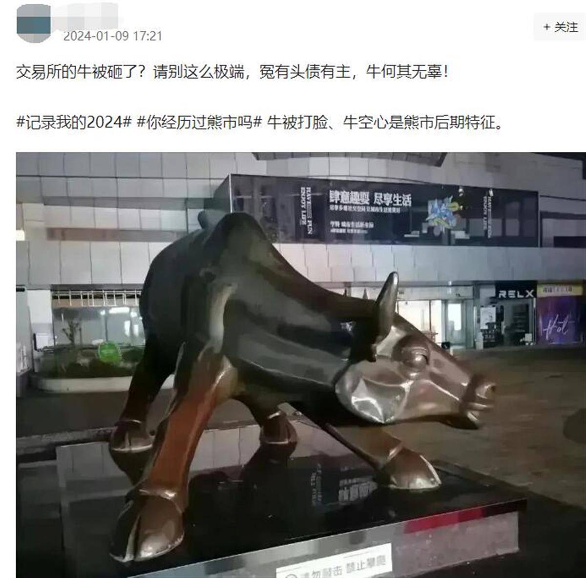1月10日,极目新闻记者就此事致电深交所,工作人员表示,没有听说“牛雕塑”被砸的情况。
