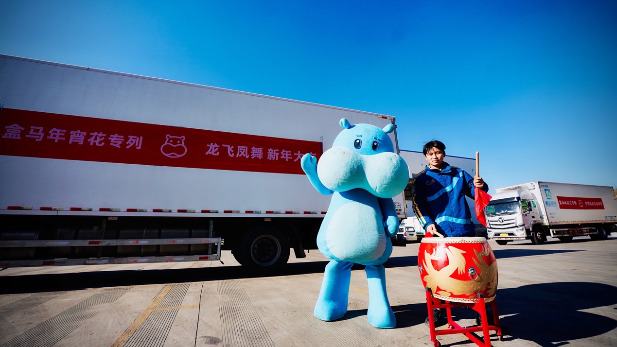 昆明,盒马年宵花“专列”首发仪式现场