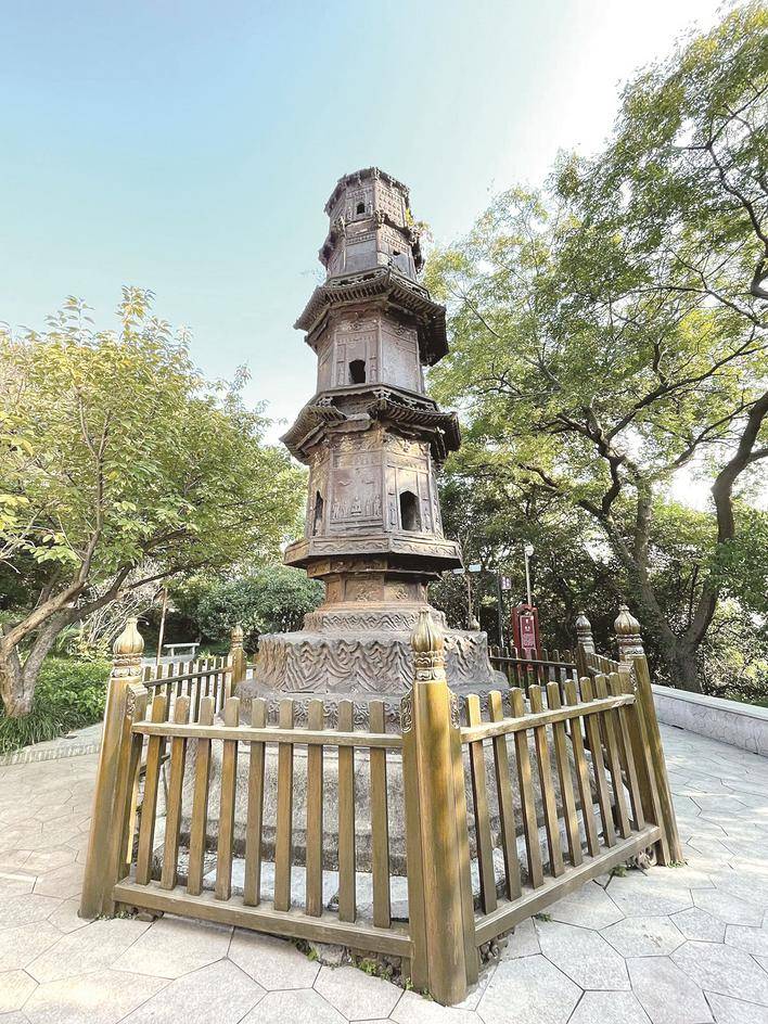 宋代甘露寺铁塔为九级八面,历千年而屡经兴废,铁塔现存宋代塔基及塔身四层(宋代残塔二层、明清残塔二层),塔的平面作八角形,下面是须弥座,铸浮雕式云水纹;宋代两层塔身,各有八面四门,铸有佛像、菩萨像和斗拱等,层与层之间还有腰檐和飞檐。铁塔仅基座(须弥座)即高约1.63 米,径约3米,如此庞大的铸件,铸造工艺相当复杂,再加上九级浮图的吊装在古代亦非易事,从中可见润州治铸业“良匠”的超群技艺和组织能力。