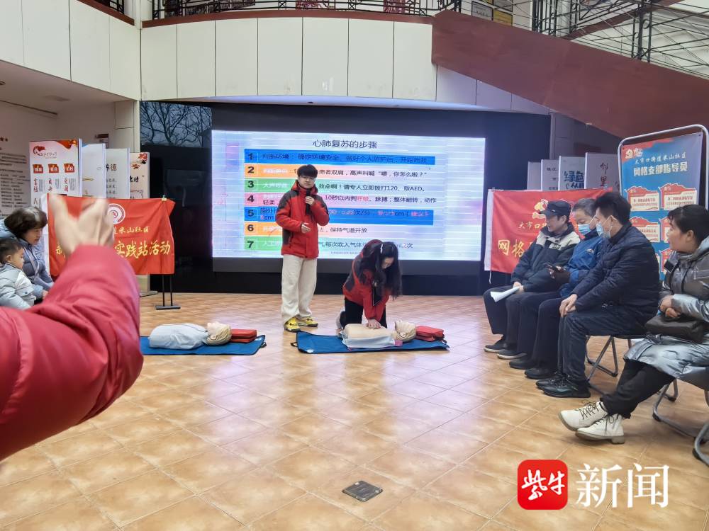 扬子晚报网1月19日讯(通讯员 傅铭 记者 万凌云) 为提高社区居民应对急救等突发事件的能力,掌握紧急救护基本技能,在突发事件中争取“救命的黄金时刻”,18日镇江市急救中心团支部“90后青年骨干”走进大市口街道米山社区,用心用情为社区居民普及自救互救知识,将急救技能送上门。