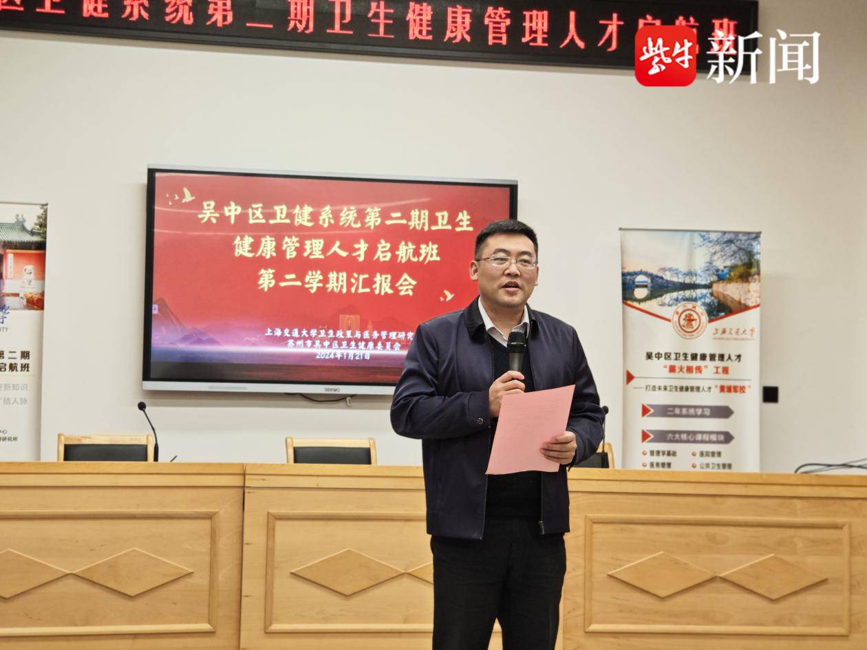 1月21日下午,苏州市吴中区卫健系统第二期卫生健康管理人才启航班第二学期汇报在吴中区委党校举行。区委组织部副部长顾志平,区卫健委党组书记、主任刘玉鹏,上海交通大学卫生政策与医务管理研究所所长李元欣,区卫健委党组成员、副主任魏晔出席。