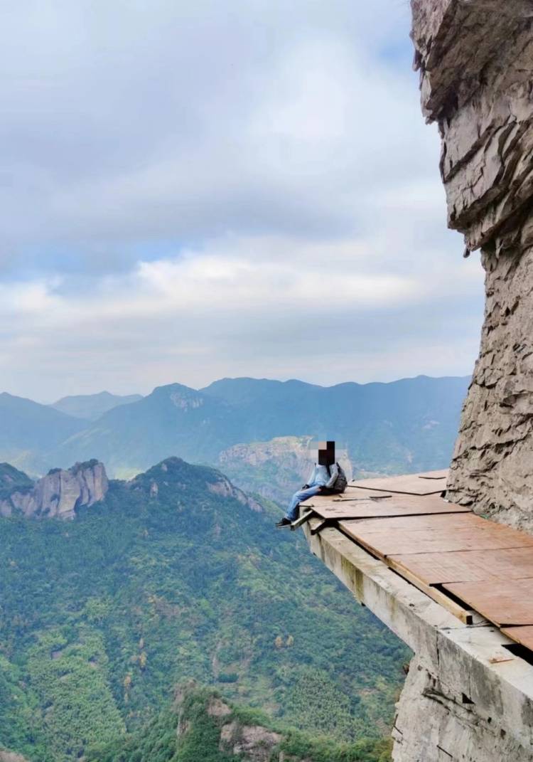 胆大的网友坐在栈道边缘,看起来非常危险。