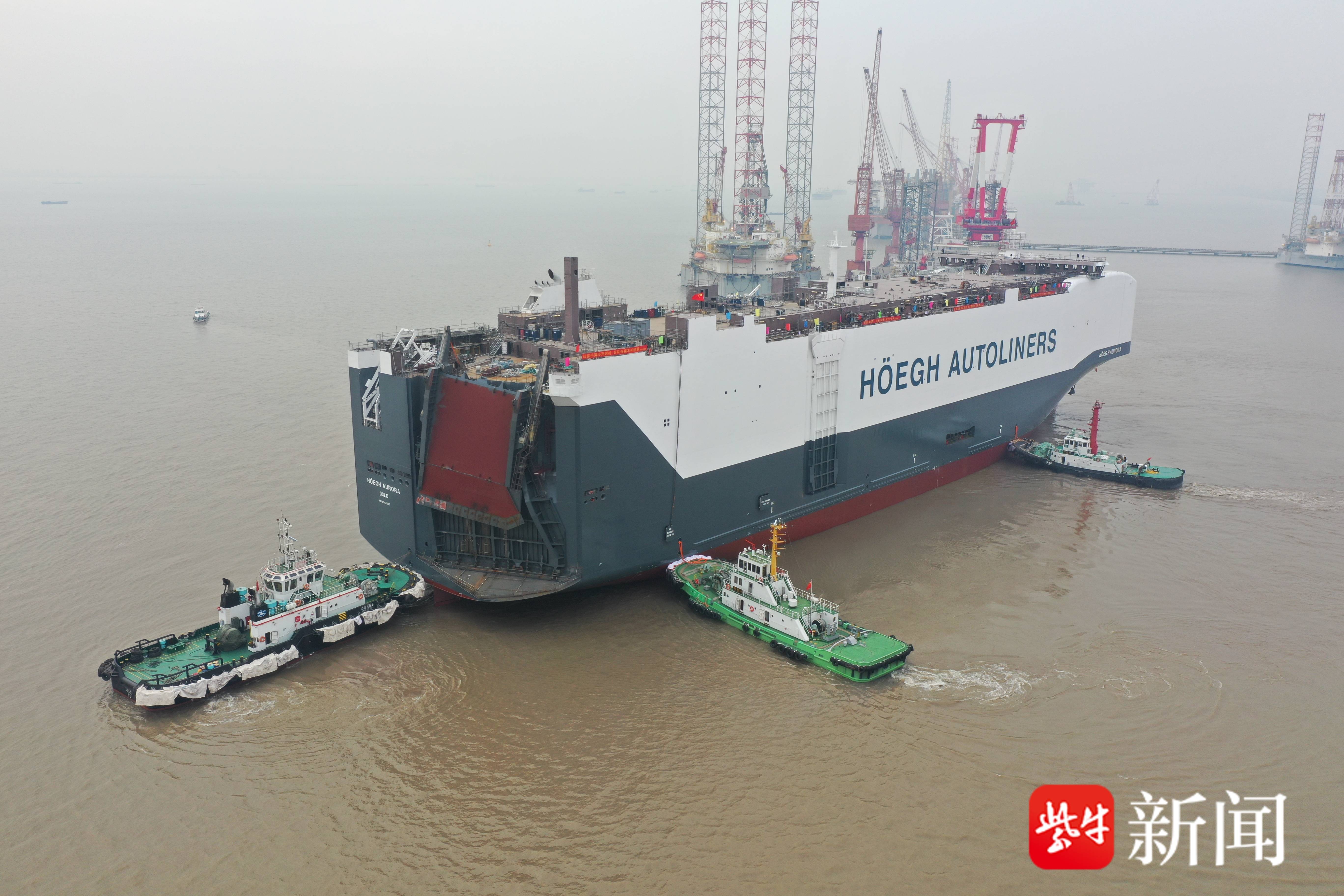 1月27日14点50分,在南通海事局的精心维护下,招商工业海门基地新造9100车汽车滚装船顺利出坞。