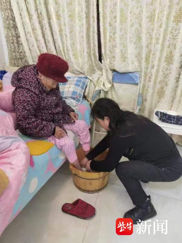 唐翠林在给老母亲洗脚