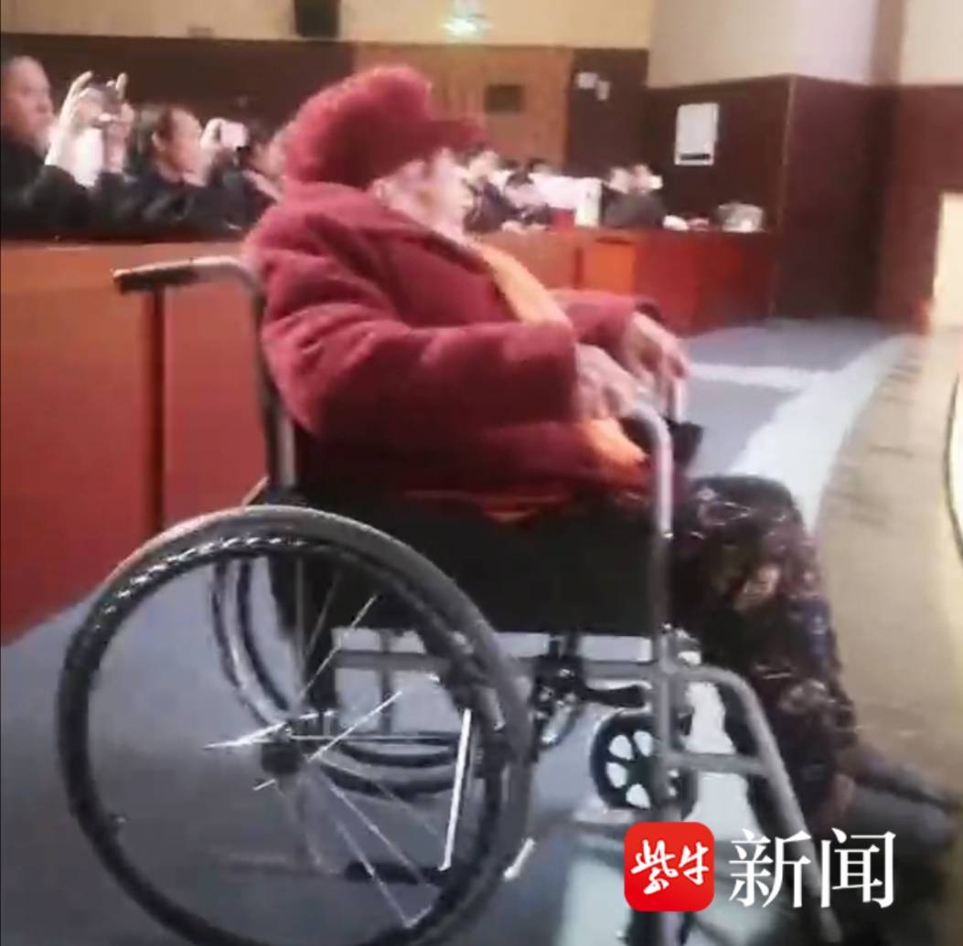 颜苏华坐在轮椅上观看淮海戏演出,坐在最前面成了特殊的“嘉宾”。