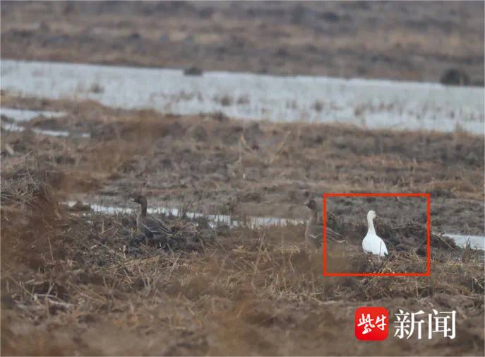 “豆雁旁边那只是大白鹅?”“好像是雪雁,是的,翼尖是黑色的,就是雪雁!”近日,江苏省盐城环境监测中心工作人员在盐城湿地珍禽国家级自然保护区附近例行鸟类观测调查中发现一只雪雁。雪雁,目前已被列入《世界自然保护联盟濒危物种红色名录》(IUCN),在越冬期主要分布在北美洲的亚热带及温带地区,偶见于我国东部,江苏省较为少见。