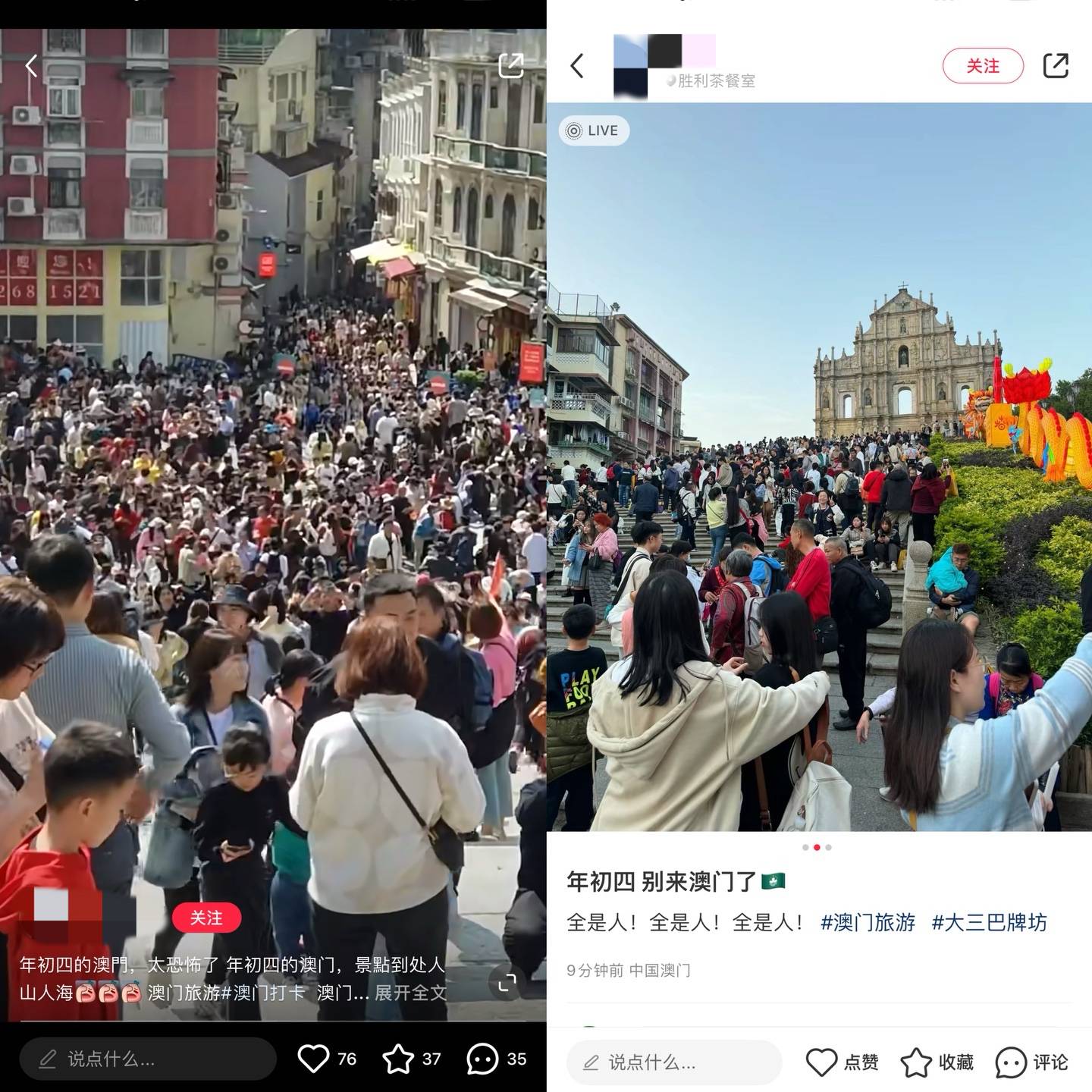 澎湃新闻(www.thepaper.cn)在社交平台看到,不少游客发布照片称年初四的澳门“全是人”,直呼“别来了”。