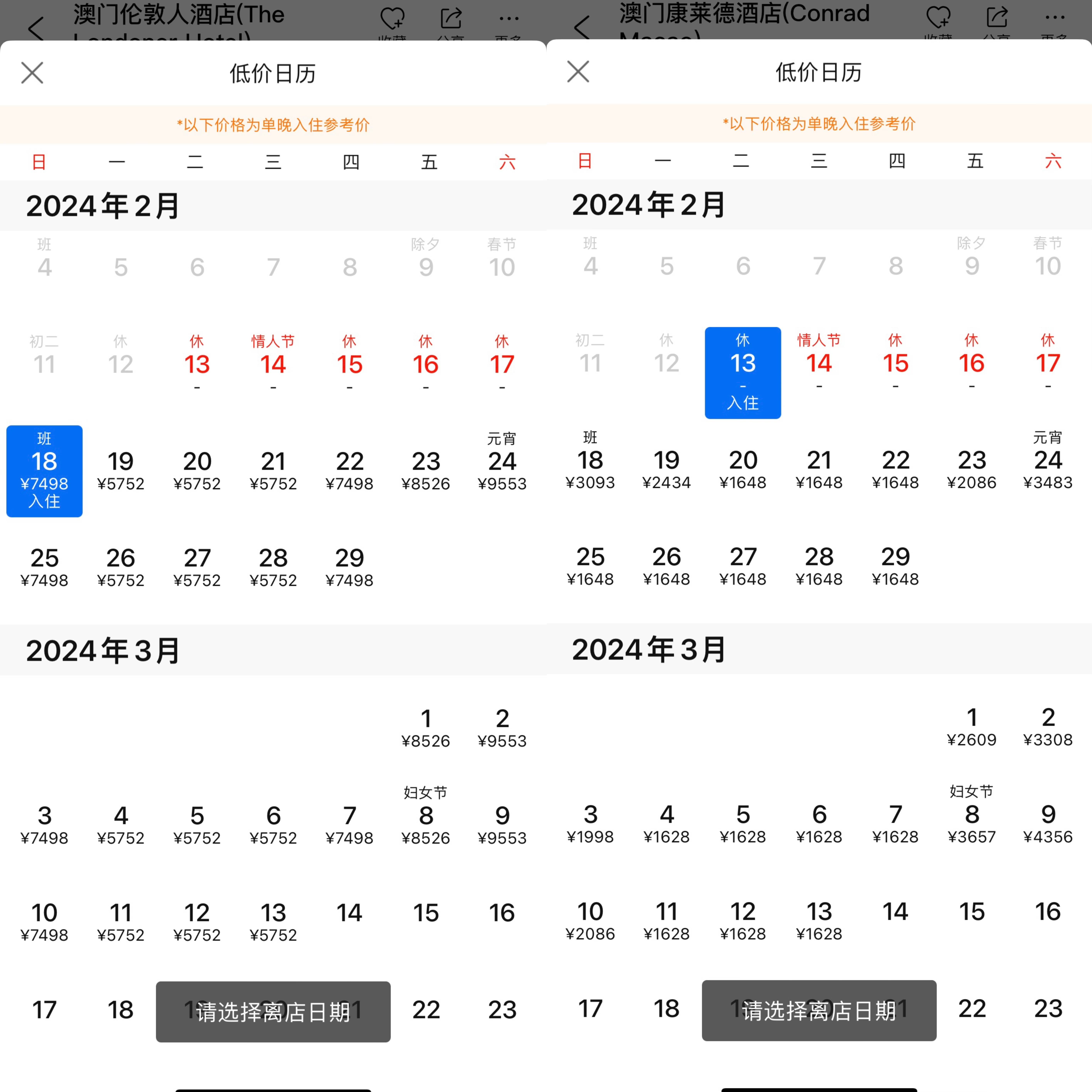 澳门伦敦人和澳门康莱德酒店2月13日至2月17日入住的客房都已售罄。