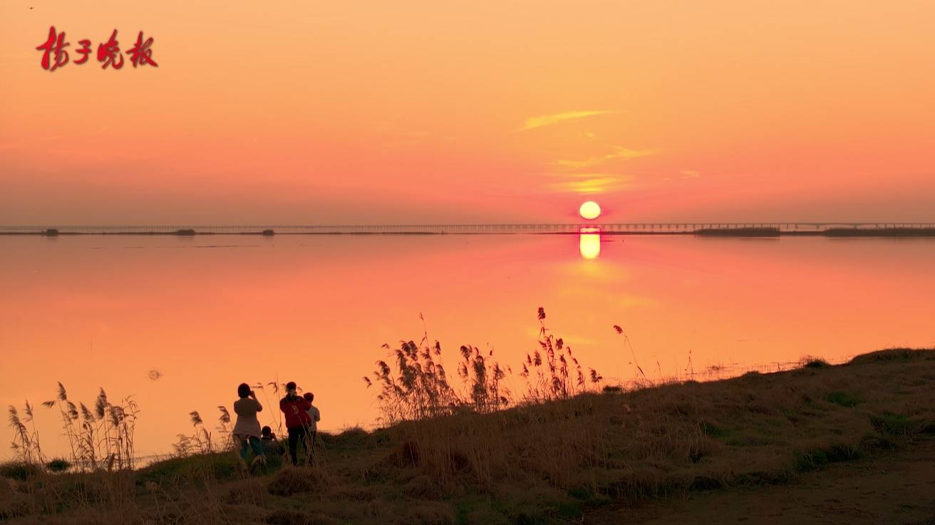 日落时分,“天空之镜”石臼湖湖面被天边的夕阳映衬得如同一幅金色的画卷,游客们在湖边漫步,享受着夕阳下的悠闲时光。伴随着一声声鞭炮声,璀璨的烟花如同点点繁星照亮了蓝色的夜空,也照耀着我们开启闪闪发光的一年!