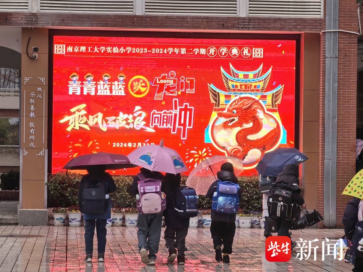 轰隆隆的春雷声敲开了新学期的门,教学楼前的广场寂静了一整个寒假,终于再次被五彩缤纷的小雨伞撑满了。2月21日早上8点,受冷雨+冰雹的恶劣天气影响,南京市理工大学实验小学虽然无法在室外举行开学典礼,但还是尽力给了孩子们一些开学仪式感。